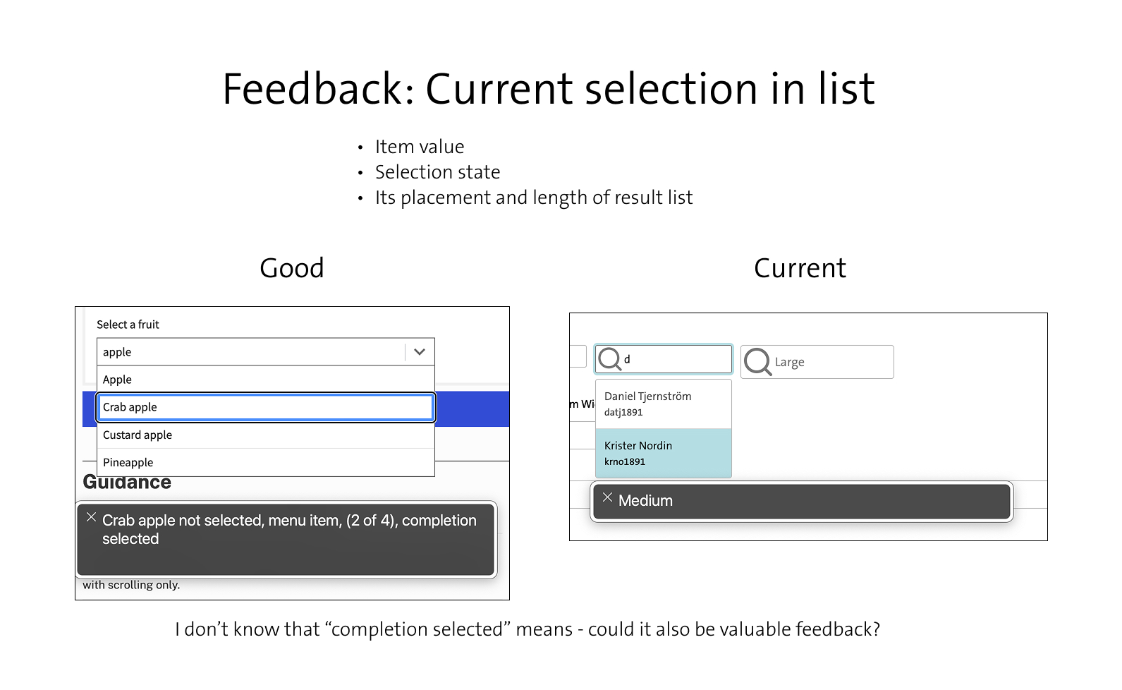 Feedback: Current selection in list
