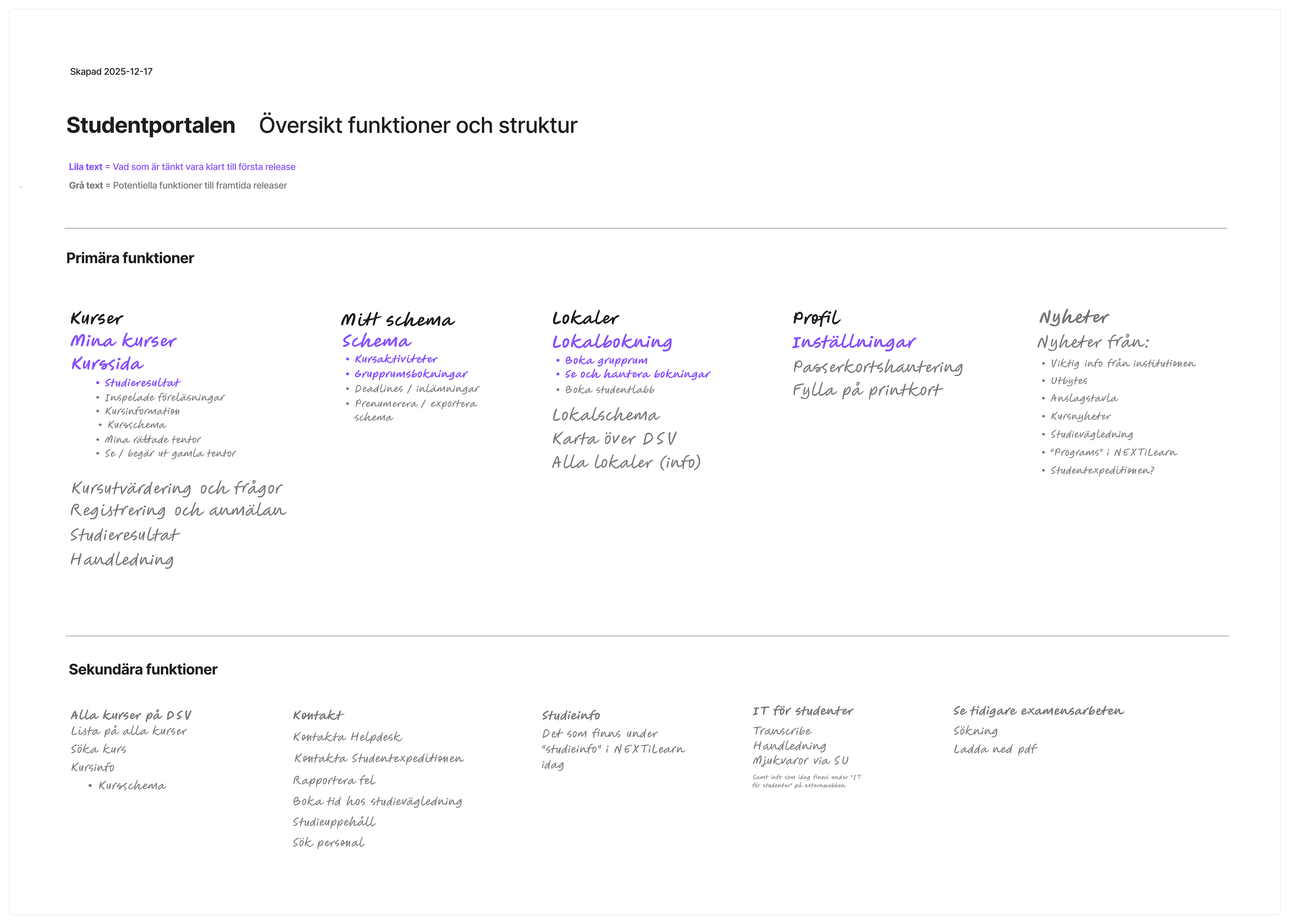 Denna wiki listar features till Studentportalen